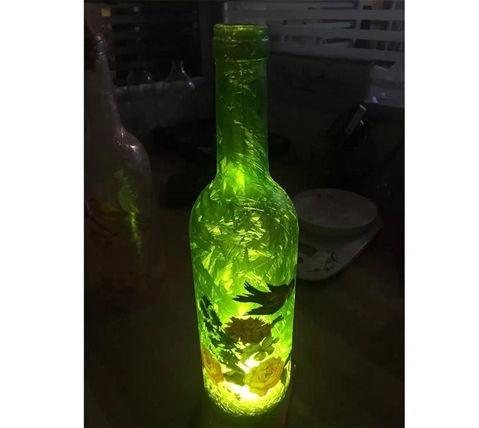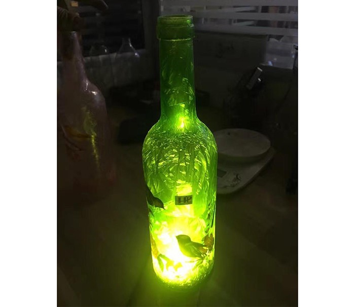 蒙砂酒瓶是在制品玻璃上,粘附一定大小面積的玻璃色釉粉,玻璃瓶廠經過580~600℃的高溫烘烤,使玻璃色釉涂層凝結在玻璃外表,并顯現出具有與玻璃主體不同顏色的一種裝飾辦法。粘附玻璃色釉粉,可用排筆涂刷,亦可用膠輥滾涂。經過絲印加工,能夠得到蒙砂面的樓空圖案。 其辦法是:在玻璃制品外表上,絲印一層由阻熔劑構成的圖案紋樣。